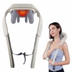 Aparat masaj cervical Hhands-free Suporto Crem pentru relaxare musculara, rola de masat Shiatsu 5D care imita masajul uman, functie incalzire, reduce stresul si oboseala, amelioreaza durerile de gat, umeri si spate