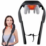 Aparat masaj cervical Hhands-free Suporto Negru pentru relaxare musculara, rola de masat Shiatsu 5D care imita masajul uman, functie incalzire, reduce stresul si oboseala, amelioreaza durerile de gat, umeri si spate